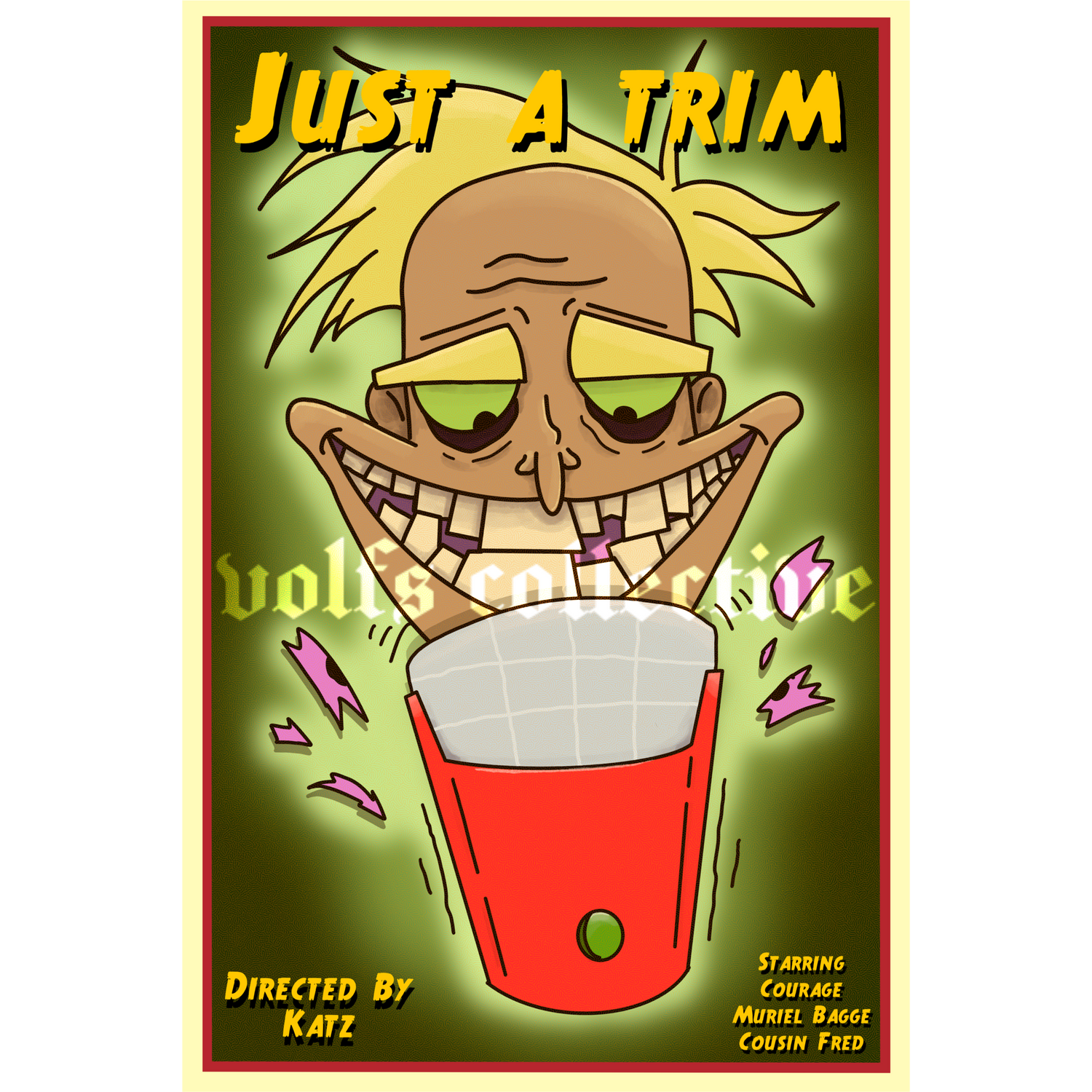Then I've got the art for you. Introducing a horror movie poster inspired by everyones favorite creepy nephew, Fred. Remember he's been quite...naughty. This is original fan art digitally printed on High Resolution Coated Bond Paper with a matte finish and is the perfect gift to bring back all your traumatizing memories of Courage the Cowardly dog.